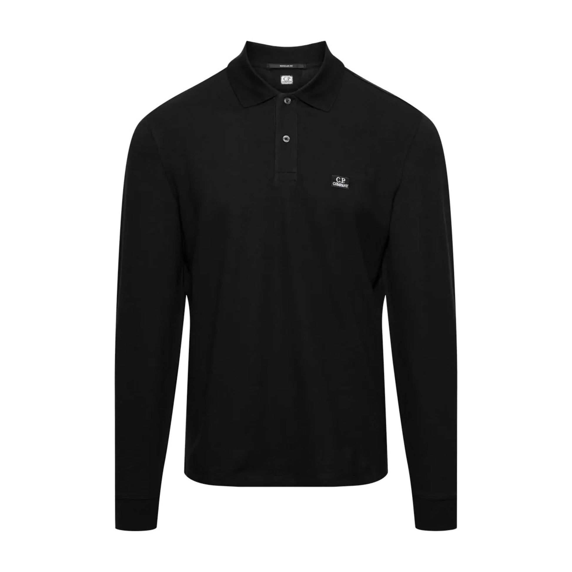 Cp Company 100A Stretch Piquet Long Sleeve Polo Shirt in Black