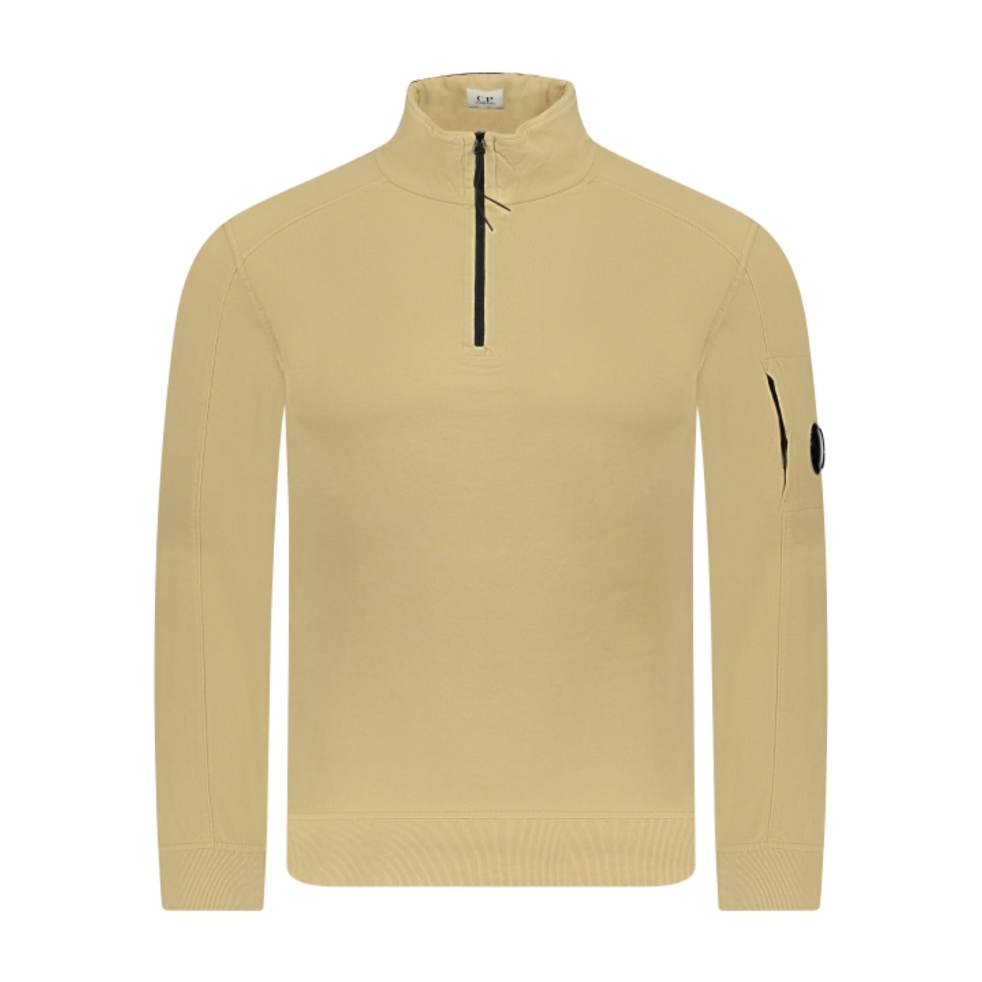 Cp Company Light Fleece Quarter Zip Lens Sweatshirt in Mojade Desert