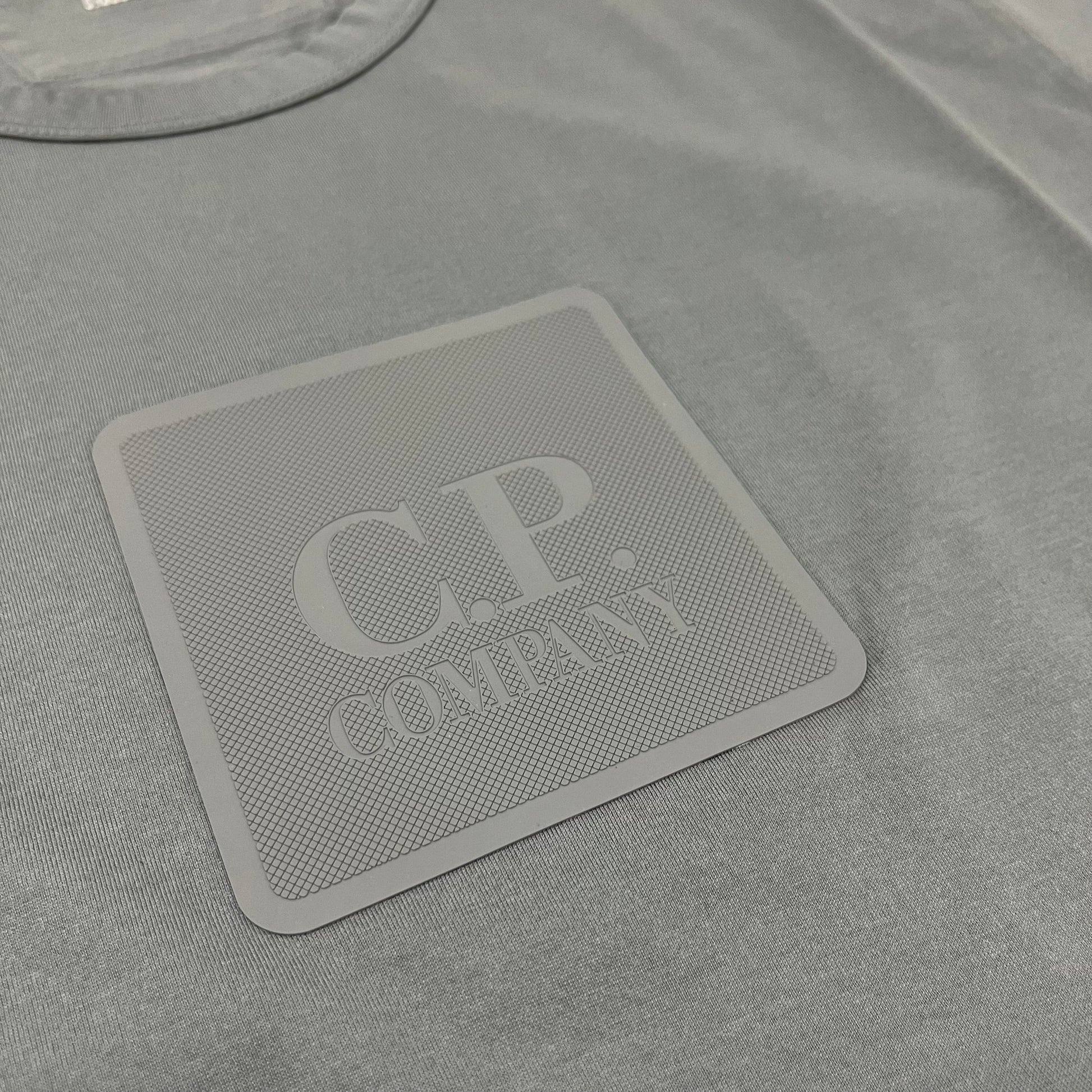 Turbulence Grey CP Company Metropolis T-shirt with large rubberized square printed logo on the front