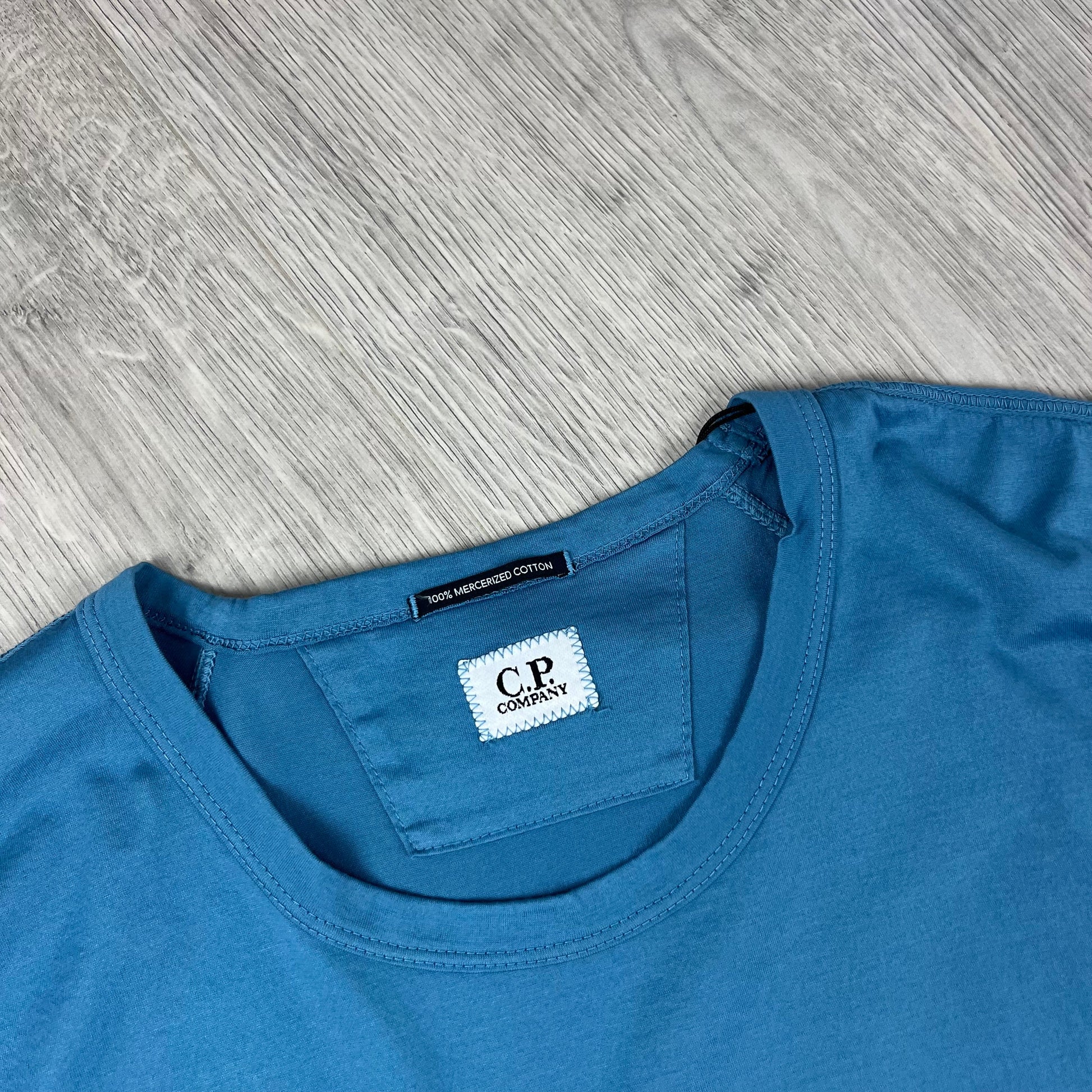 Aegean Blue CP Company Mercerized 70/2 Light Jersey T-Shirt with small logo print central on the chest