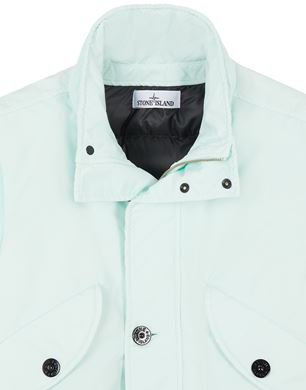 LASER PRINTED DAVID-TC DOWN: Down vest in David-TC Down. Beginning with a star-shaped cross-section Japanese polyester/polyamide substrate, garments in David-TC are sewn and then simultaneously garment dyed and treated with an anti-drop agent. During the dye process, under pressure at 130°C, the fabric undergoes heat-induced compression, radically transforming its texture and construction for a truly unique tactile effect. The finished garment is engineered to be then filled with premium feathers. The print motif is 'lasered' on the finished garment, after garment dyeing; the laser beam erodes the fabric lending the design a different colour.