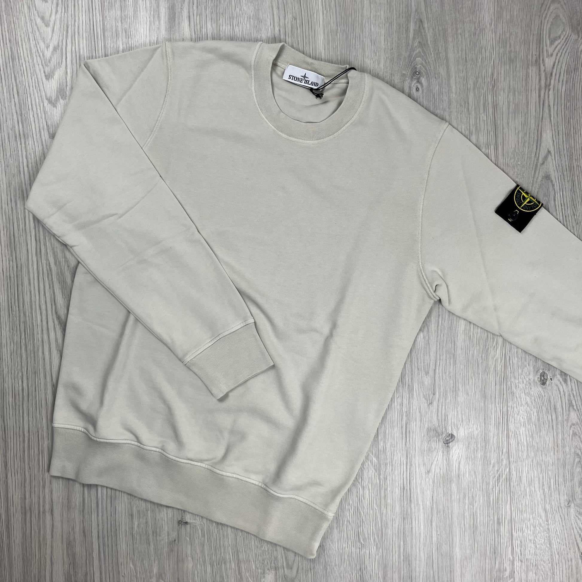 Plaster beige Stone Island brushed cotton sweatshirt with sleeve badge