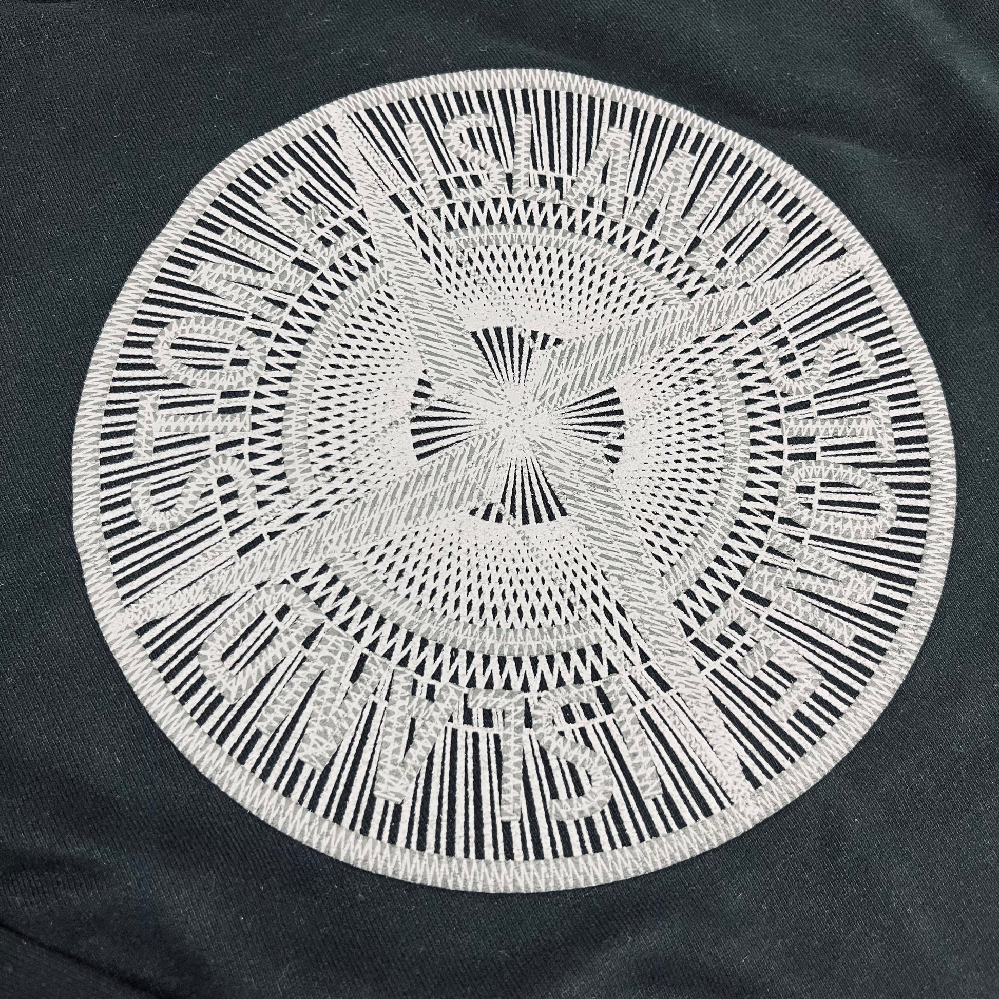 Black Stone Island garment crewneck sweatshirt with 'Industrial One' embroidered design on the front