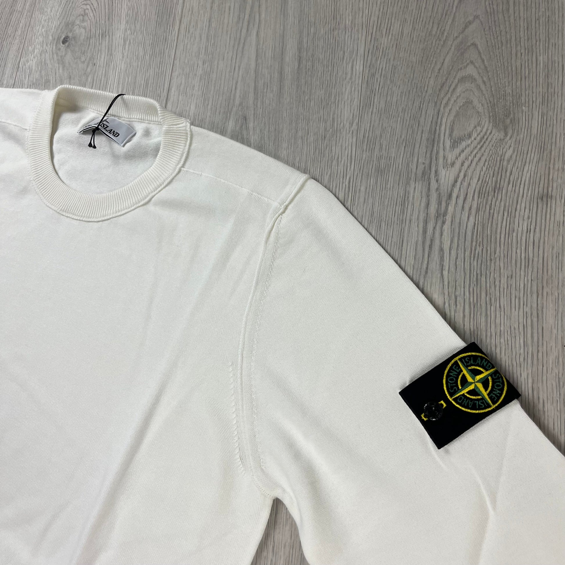 Men’s Stone Island cotton knit sweatshirt in white with sleeve badge