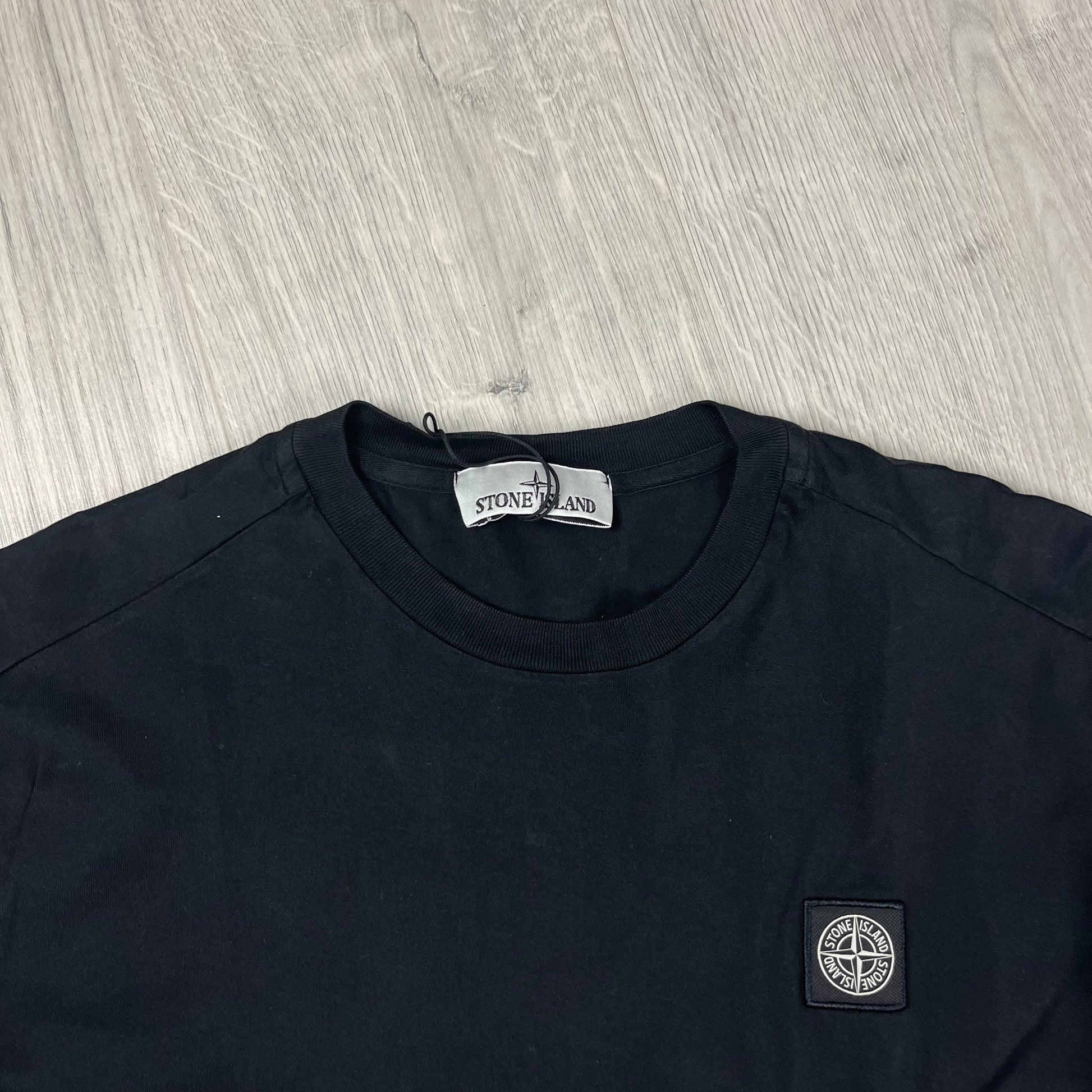 Men’s Stone Island black long sleeve T-shirt with chest patch logo